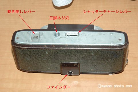 フィルムを巻き戻すときは,巻き戻しレバーを引いて,スプロケットをフリーにする。フィルムを巻き上げると,スプロケットの動きにあわせてシャッターチャージレバーが動き,シャッターがチャージされる。このシャッターチャージレバーは,単独で操作し,シャッターをチャージすることも可能である。
